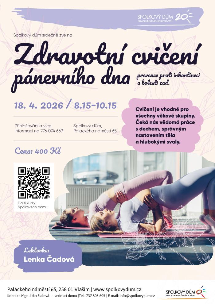Zvu vás na své dva workshopy, kde si nejen příjemně zacvičíte, ale zaměříme se cíleně na cviky pánevního dna a naučíte se, jak takové cvičení efektivně dělat i doma...